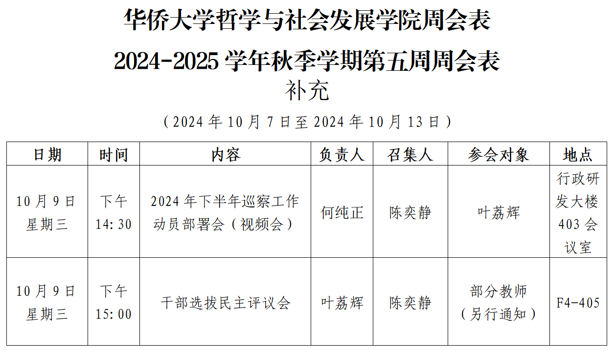 哲社学院2024-2025学年秋季学期第五周周会表 补充