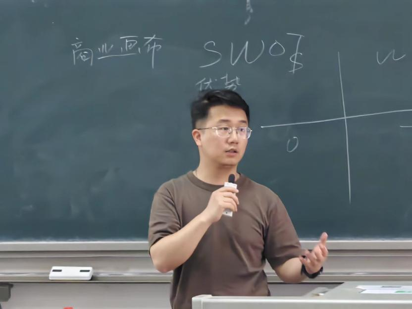 张温兴老师从开始准备、逻辑梳理、具体内容分析三方面展开叙述。首先,张老师在强调创业成功的唯一条件是“付费客户”的基础上,将人、技术和市场中的其他要素作为补充条件,让同学们明确赛事商业计划书的最终目的是瞄向“赚钱”。此外,张老师还分享了部分计划书的封面、执行概要、项目亮点,与同学们共同探讨如何设计一件优秀参赛作品的问题。随后,张老师着重解析了赛事商业计划书的模板部分,他从痛点阐述、方案、技术壁垒、竞品分析、技术应用、核心和商业模式、目标客户、财务分析、融资与股权、带动就业、引领教育两条线出发,剖析了设计一份赛事商业计划书的过程。