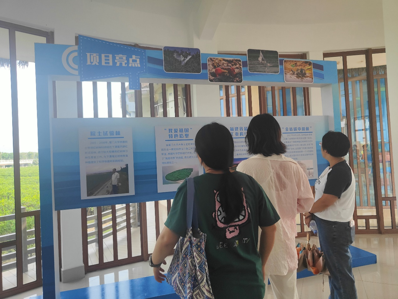 理论学习结束后,本科生第一党支部书记鞠芳同志带领支部成员在红树林公园内的凤凰馆和青鸾馆进行参观,了解红树林的价值以及下潭尾红树林生态修复过程。参观过程中,大家通过聆听现场解说、阅读图文展板和观看视频等方式,深刻感受到了随着生态环境的改善,“林—滩—海”生命共同体和红树林生态屏障愈加稳固,海岸带生态活力与韧性不断增强,绿色发展处于全国领先水平已经成为厦门市最突出的亮点之一,下潭尾红树林公园是厦门贯彻落实习近平生态文明思想的新名片。