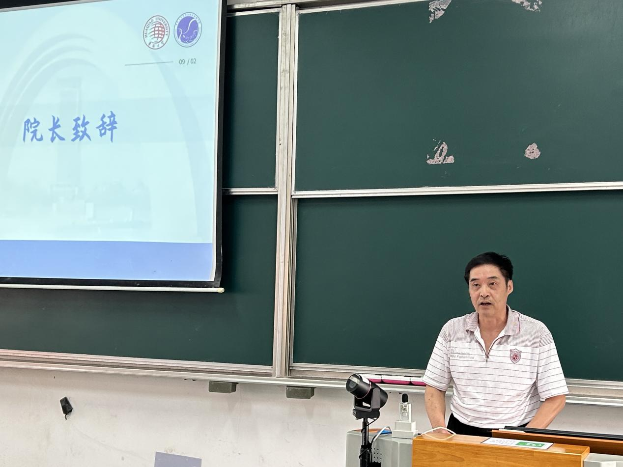 大会在国歌声中拉开帷幕。会上,许斗斗进行院长致辞。他对新同学的到来表示热烈欢迎,并为同学们介绍了哲社学院的概况。随后,他分享了他对哲学的理解,指出我们应该以追求真理为目标,呼吁同学们不仅要勤奋学习、珍惜时间,更要注重培养人的健康品格,诚信做人、宽厚待人、与人为善。