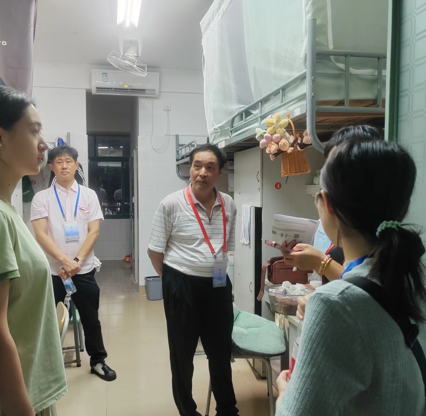 2024年9月2日晚,为了解在校住宿新生的生活状况,关怀学院新生身心健康,我院院长许斗斗,党委书记李永松,副院长常旭旻、王嘉顺,团委书记鞠芳,辅导员张振泽,研究生班主任吴婕、本科生班主任袁素与学生骨干来到2024级研究生、本科生各寝室开展走访,了解新生入学和寝室条件的实际情况,倾听新生对校园生活的期盼和需求。