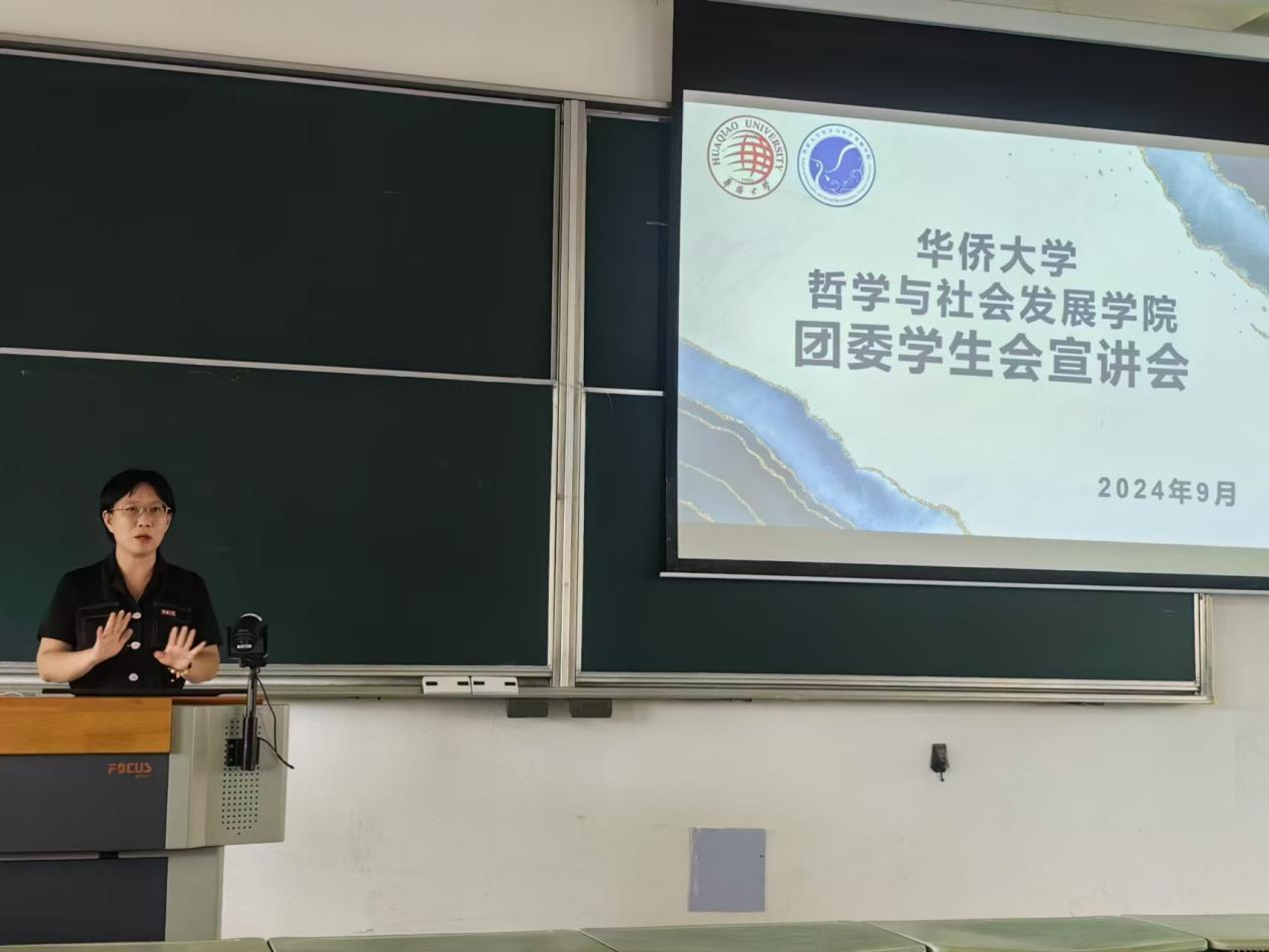 2024年9月5日下午,哲社学院第十三届团委、学生会纳新宣讲工作于E4-202召开。团委书记鞠芳,辅导员张振泽,2024级本科生班主任袁素,团委、学生会主要学生干部出席本次会议,哲社学院24级全体本科新生与会。大会由学生会主席团成员刘珈辰主持。