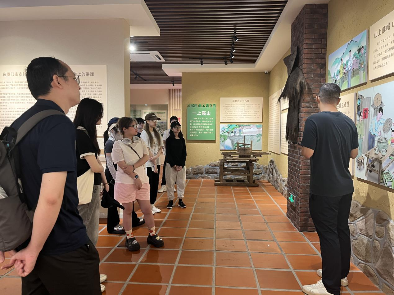 本次活动中,老师同学们一同进入了军营村并在作为军营村的党史学习教育基地的高山党校初心使命馆进行参观学习。展厅内,一件件感人至深的革命故事,一帧帧定格瞬间的珍贵影像以及一个个见证历史的古朴事物,都向大家诉说着先辈们的奋斗历程。境外新生们在讲解员的带领下进一步了解到军营村当地的具体情况与使命馆中蕴含的红色文化,对华侨与中国革命也有了更深刻的理解。