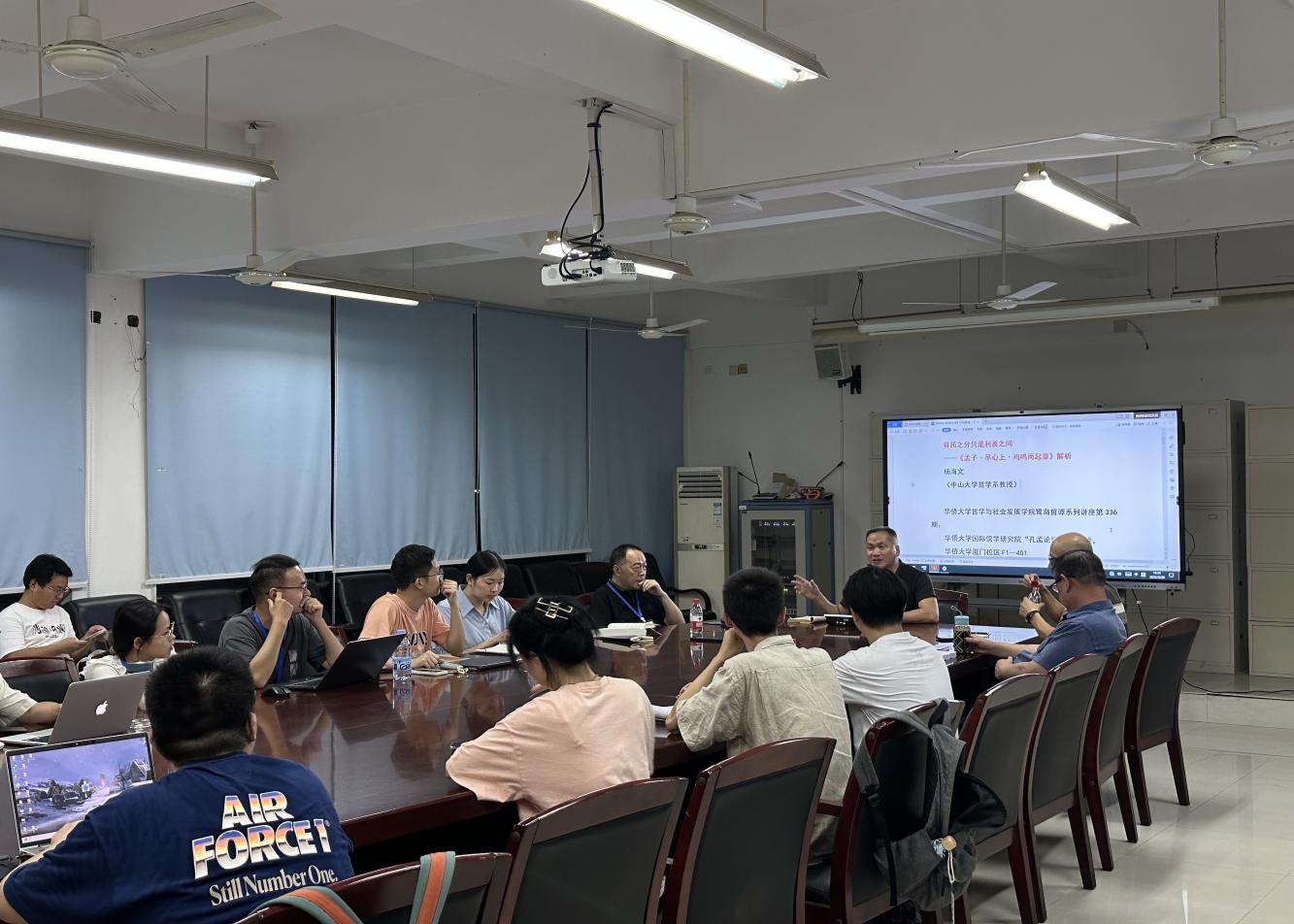 2024年9月20日晚,中山大学哲学系杨海文教授莅临我院,做了《舜跖之分只是利善之间——〈孟子·尽心上·鸡鸣而起章〉解析》的学术报告。集美大学马克思主义学院肖仕平教授特邀主持,永利集团厦门校区及校外30余名师生参与听讲与讨论。