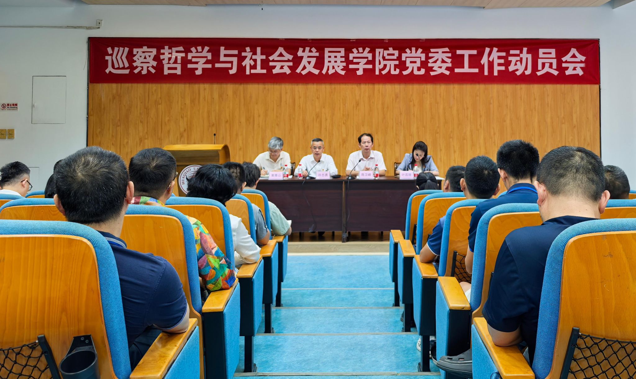 根据校党委统一部署,10月15日下午,校党委第二巡察组巡察哲社学院党委工作动员会在王源兴国际会议中心G103召开。校党委常委、副校长许志勇,校纪委副书记、巡察办主任黄青山,巡察二组组长陈卫峰,巡察组全体成员、学院党政班子成员以及全体教职工参加会议。会议由学院党委书记、副院长叶荔辉主持。