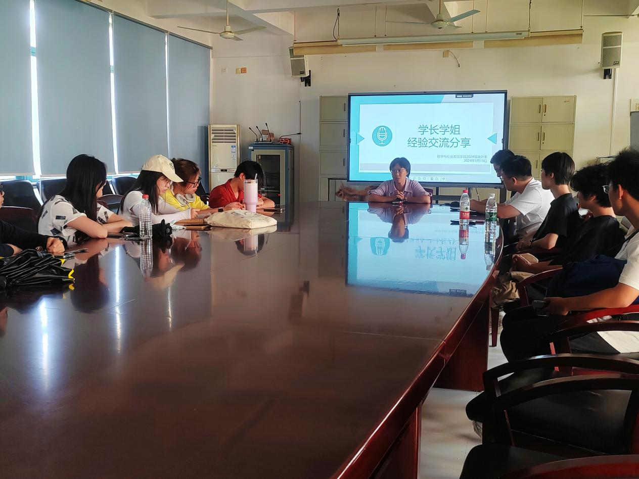 2024年9月18日下午15:00,哲社学院学长学姐经验交流分享会在哲社学院F1-401举办。我院团委书记鞠芳出席本次会议,我院23级境外生硕士张煌伟、院学生会主席团成员姜乃新、叶嘉欣、王烁为以及我院24级全体境外生与会。