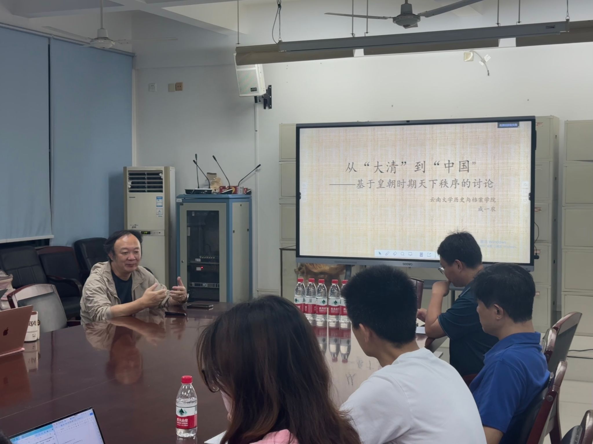 2024年10月20日晚19:00,云南大学历史与档案学院研究员、博士生导师成一农研究员应邀来我院做《从大清到中国:基于皇朝时期天下秩序的讨论》的学术讲座。讲座由永利集团哲学与社会发展学院王子剑博士主持,副院长常旭旻副教授、郭征博士以及本科、硕士研究生等30余人参加。