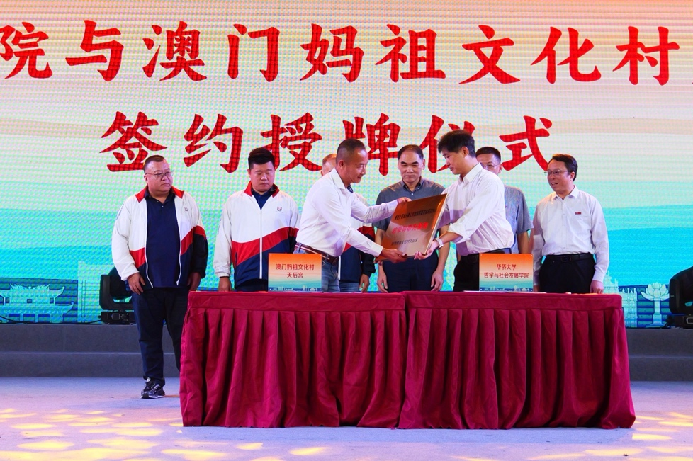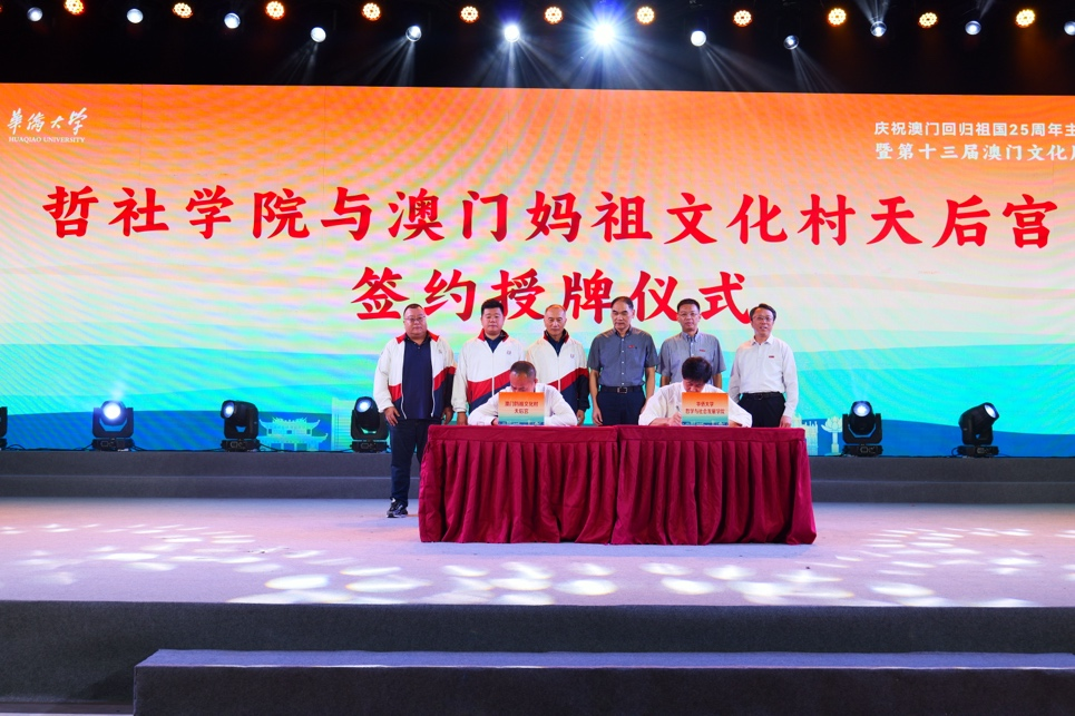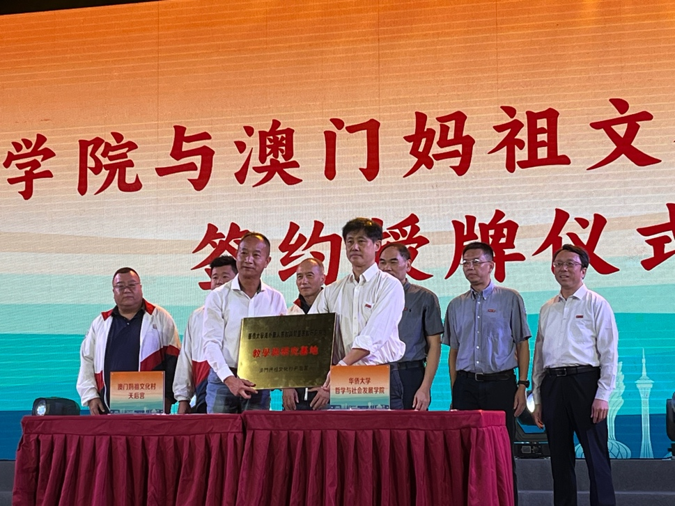 我院一直以来重视宗教学尤其是华侨华人宗教传承的教学与研究工作,2016年我院海外华人宗教与闽台宗教研究中心被福建省教育厅列为“福建省高校人文社会科学研究基地”,相继获批国家社科基金重大项目1项、重点项目2项、一般项目5项,在《世界宗教研究》《世界宗教文化》《宗教学研究》等核心杂志发表论文近30篇。研究成果获得福建省人文社科优秀成果三等奖2项。我院海外华人宗教研究与闽台宗教研究中心已经发展成为在福建省名列前茅,在全国有较大知名度的宗教学研究基地。本次我院海外华人宗教与闽台宗教研究中心在澳门妈祖文化村天后宫设立教学与研究基地,一方面有利于联合澳门妈祖文化村天后宫进行妈祖文化及其他宗教文化的发掘、研究与提升工作;另一方面,可以为我院宗教学专业研究生提供教学实践基地、为宗教学专业老师提供重要的研究场所和研究案例。同时,通过教学研究基地的设立,还可以进一步加强我校与澳门中华妈祖基金会和华大澳门校友会之间的联系和交流,扩大我校在澳门的影响。