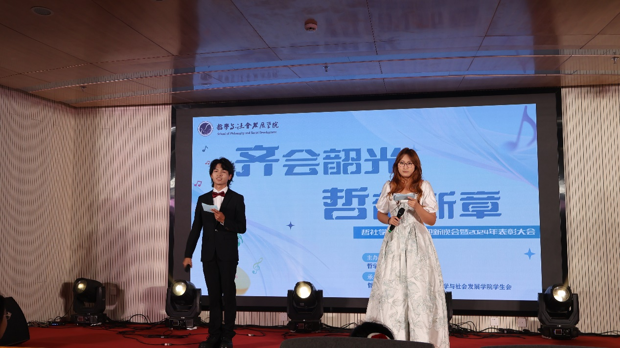 邹兵与景昱涵同学担任哲社学院2024年表彰大会暨迎新晚会主持人