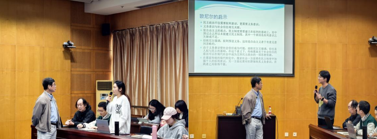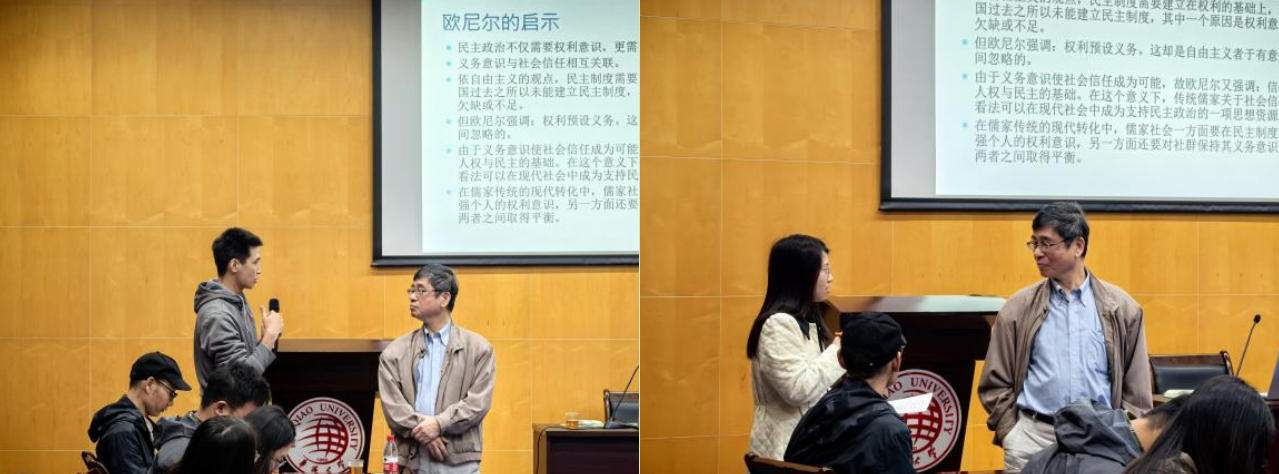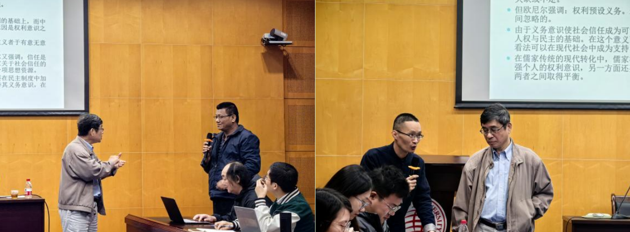 随后,我院师生就讲座主题与李明辉老师进行了热烈而深入的交流。讨论涉及传统与现代的关系、中西哲学对话尤其是儒家思想与康德哲学的互鉴、哲学研究方法、传统思想资源的现代转化与应用等。