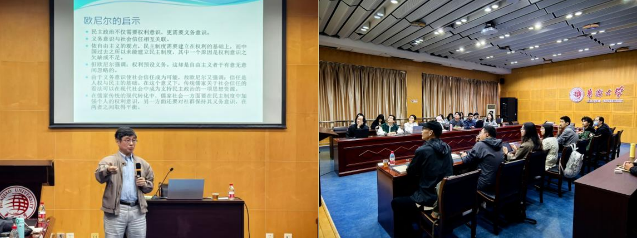 2024年12月14日上午,台湾“中央”研究院中国文哲研究所李明辉教授莅临我院,主讲“鹭岛哲谭”第346期暨“孔孟论坛”第58讲,作题为《儒家传统与信任社会》的学术演讲。杨少涵老师主持了演讲,王阳、毛朝晖、薛子燕、郭征、吴婕、袁素等老师及本硕博学生等30余人听讲,并进行了热烈的互动讨论。