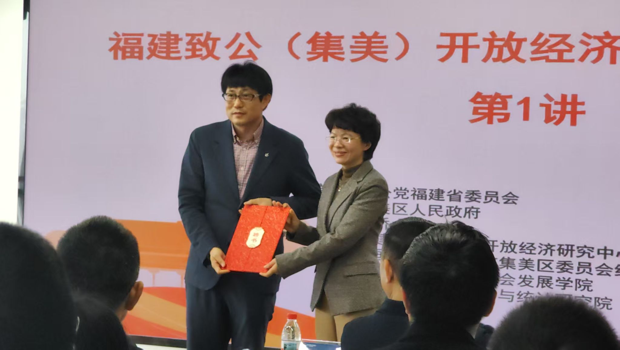 活动伊始,集美区委常委、统战部部长江彩蓉为在中资企业出海领域研究颇有建树的民建会员、乌克兰技术科学院教授及院士、永利集团特聘教授(2016)、穆麟德公司董事长、嘉德欧公司联席董事长巩家诚先生颁发了福建致公(集美)开放经济研究中心智库专家聘书,现场响起热烈掌声,这一环节充分彰显了集美区对中资企业出海发展的高度重视以及对专业人才的殷切期待。
