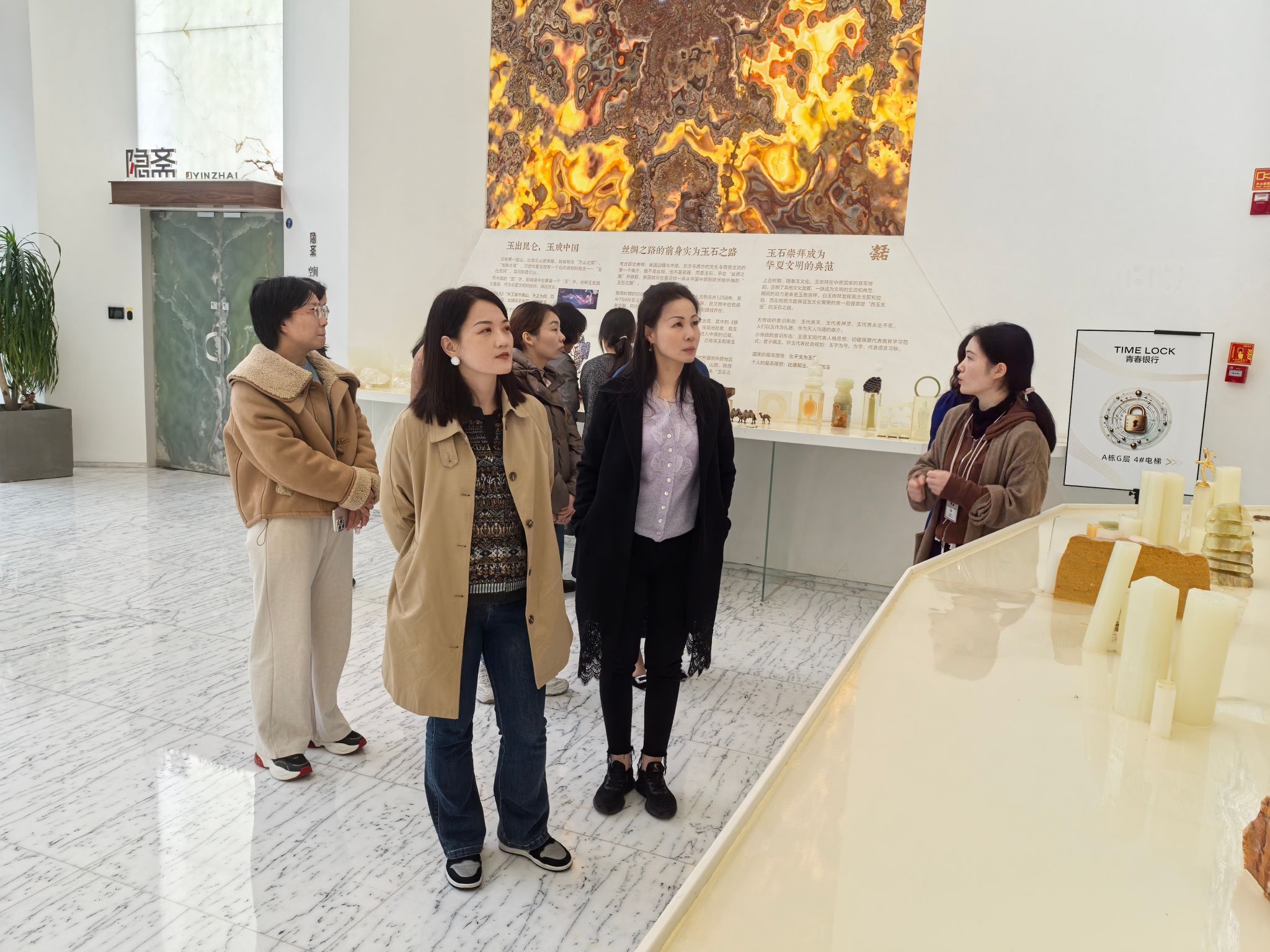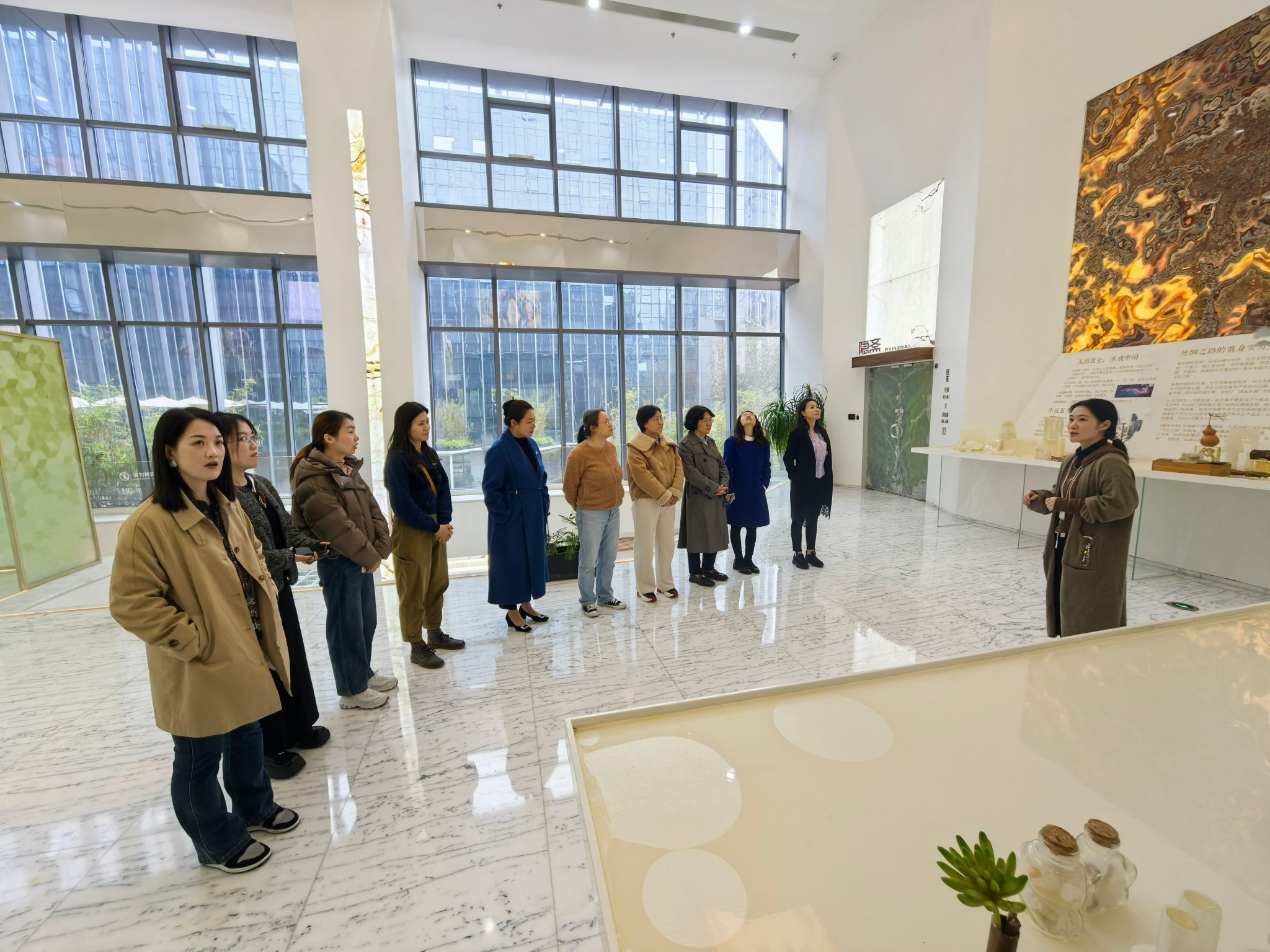 此次活动以“玉石”为载体,设计了诸多环节。首先,在讲解员的带领下,教师们了解到了这座博物馆的创办历史。它曾在2022年获评“福建省家庭教育创新实践基地”,其特别设置的亲子体验空间为教师们提供了“亲子游”的新思路,促进代际间的文化传承与情感联结。同时,通过参观博物馆的文化长廊及美学空间等,教师们还了解到了玉石的历史渊源、工艺美学及其在建筑中的创新应用。
