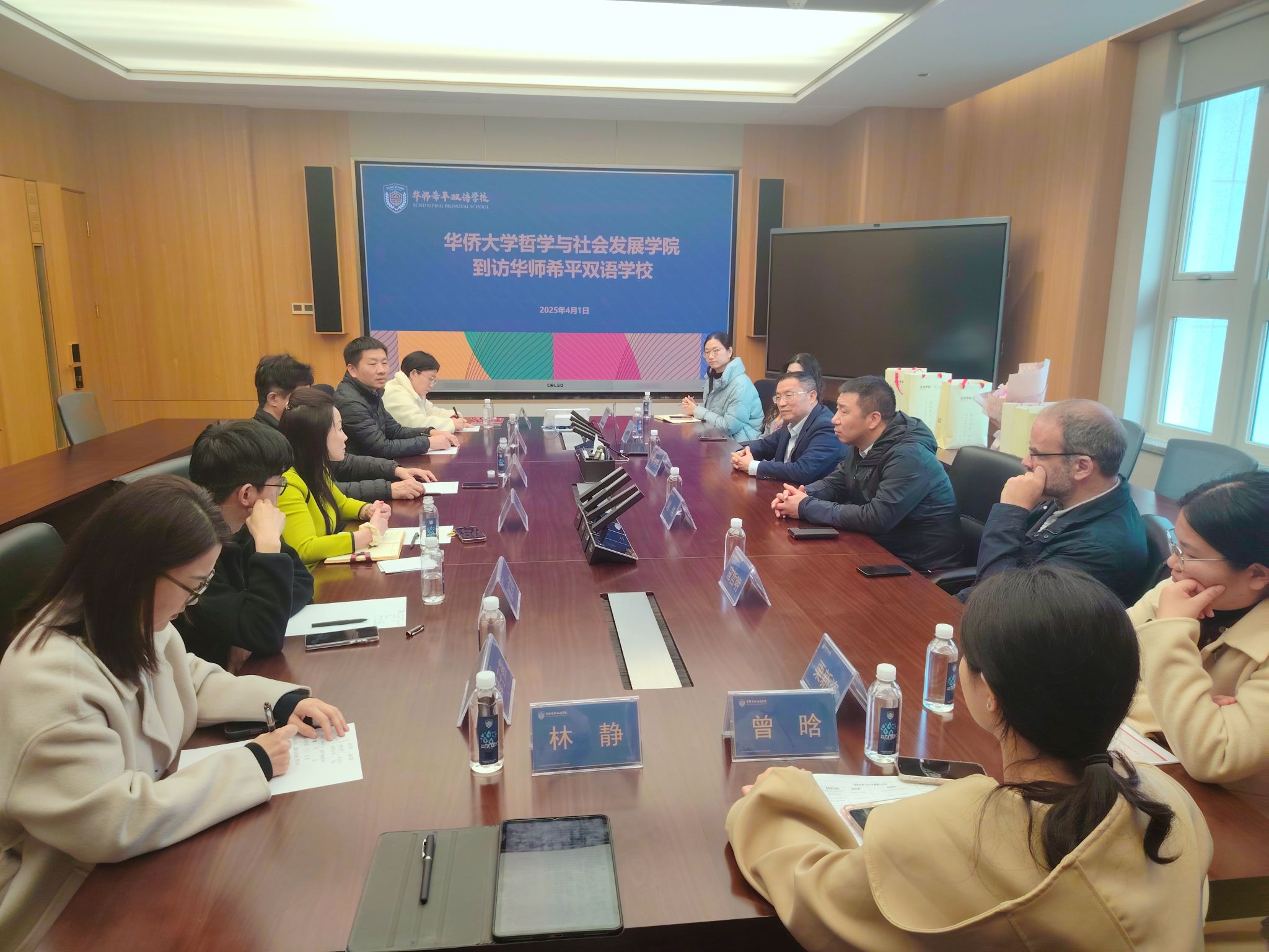 华师希平双语学校总校长刘伟对学院领导的到访表示热烈欢迎,并向与会人员介绍了学校的办学历史、办学理念、教学特色以及学校取得的科技创新成果。刘校长强调,学校以“创造美好人生、托起中华希望、培育民族脊梁、书写世界精彩”为使命,致力于培养具有国际视野和文化自信的新时代人才。