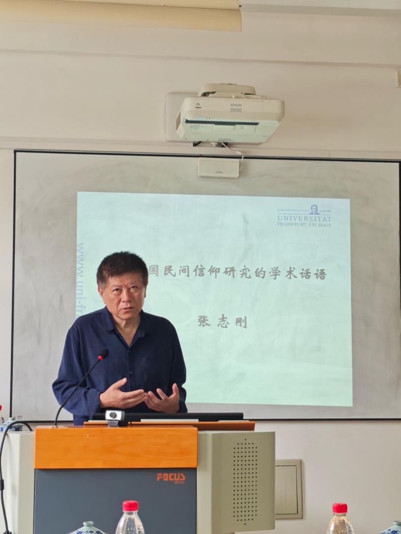 2025年6月5日上午9:30,未名湖畔的学术之风拂至我院,北京大学博雅特聘教授、宗教文化研究院名誉院长张志刚教授应邀前来做《重建中国民间信仰研究的学术话语》的学术讲座。讲座由我院张云江老师主持,范正义、刘守政、常旭旻、王静、廖俊宁等老师以及我院宗教学专业硕士生共30余人聆听了此次讲座。