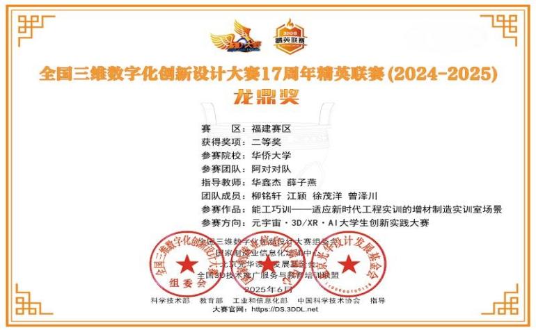 据悉,全国三维数字化创新设计大赛是教育部认可的全国性重要赛事,自2008年创办以来,已发展成为具有广泛影响力的创新实践平台。本届大赛吸引了全国600余所高校、1000余家企业参与,竞争异常激烈。我院大一团队能够在如此高水平的赛事中脱颖而出,充分展现了我院人才培养的显著成效。