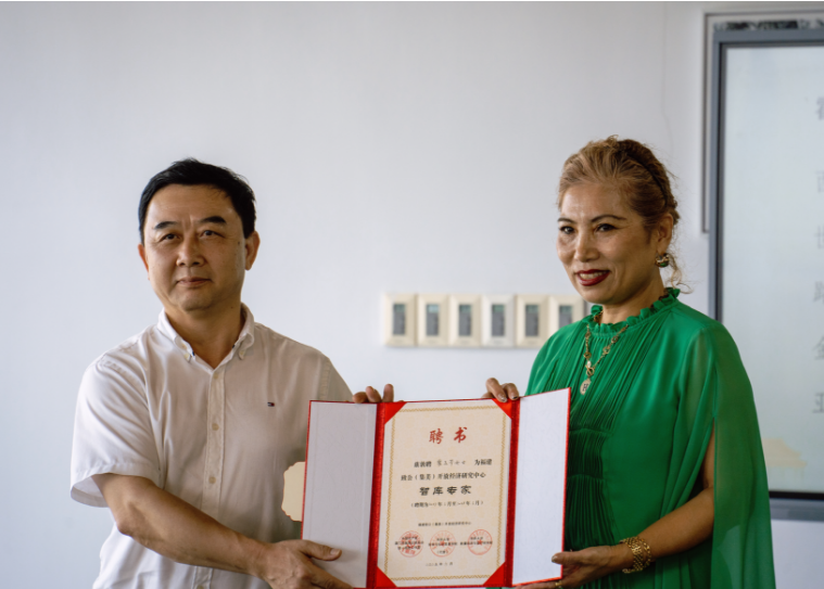 本次讲座特别邀请到了在中企出海西班牙及海外布局领域经验丰富的西班牙中国投资贸易商会会长、世界自由贸易组织财务长、路贸通集团(中国)驻欧盟首席执行官霍玉芳女士担任主讲嘉宾。活动伊始,集美区委统战部常务副部长、区侨办主任谢乐峰先生为霍玉芳女士颁发了福建致公(集美)开放经济研究中心智库专家聘书。