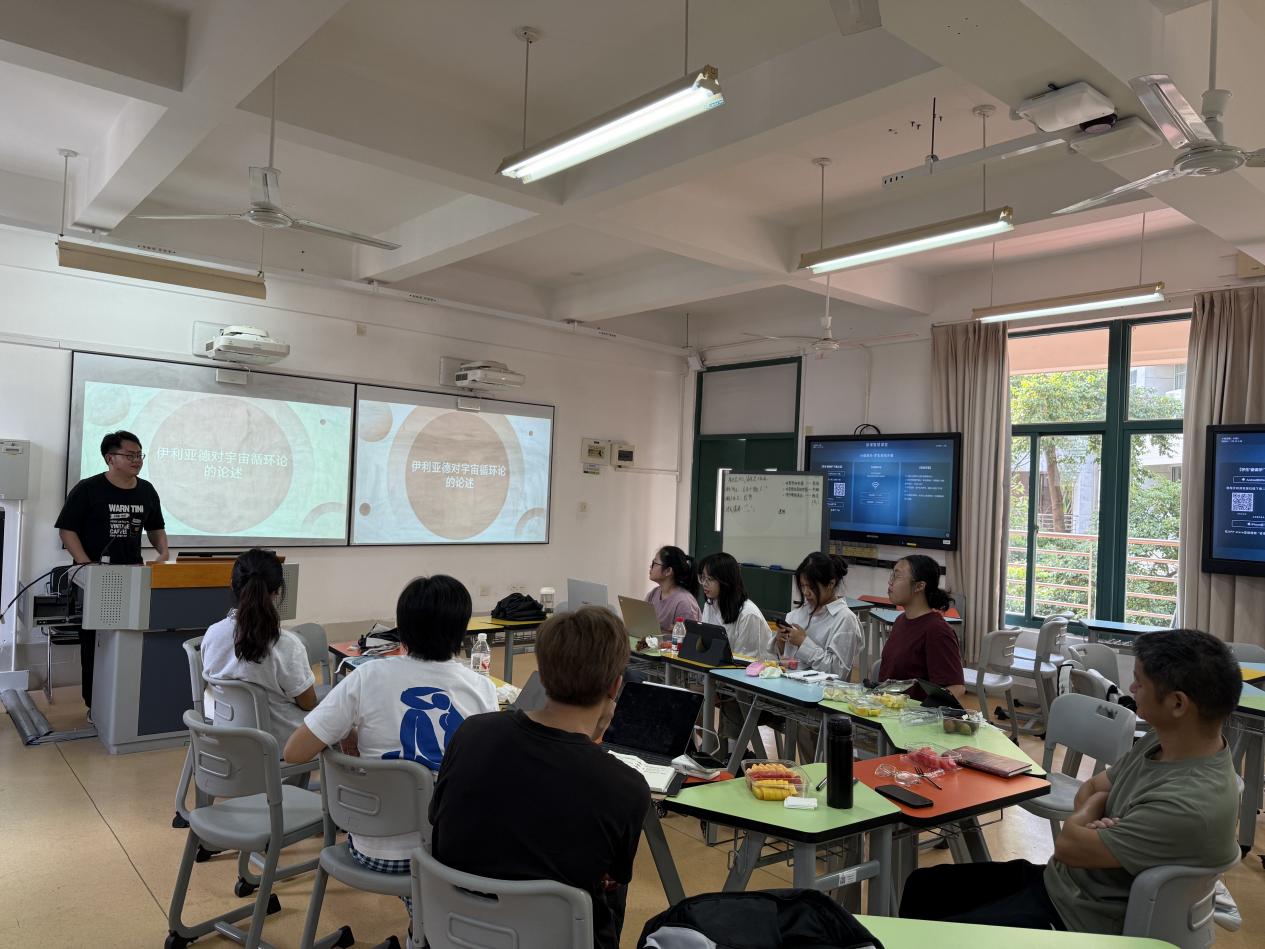 2025年7月7日下午, 在我院范正义教授带领下,宗教学、马哲等专业十数名研究生于F1-301举行《永恒回归的神话》读书分享会,师生们围绕书本内容展开了深度对话。