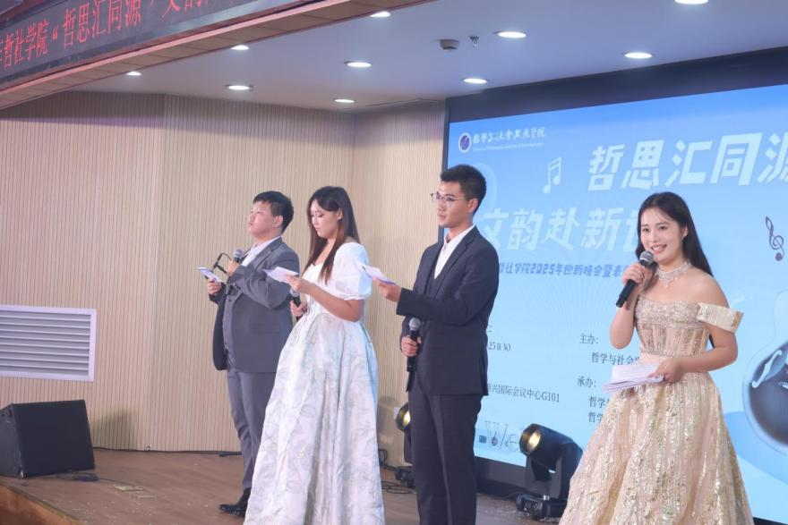 哲社学院党委书记、副院长叶荔辉,副院长常旭旻,院长助理郭荣茂,2022级哲学1班班主任喻郭飞以及学院辅导员张振泽出席本次晚会。参演同学、2025级本科生研究生、获奖同学以及各年级学生代表欢聚一堂。