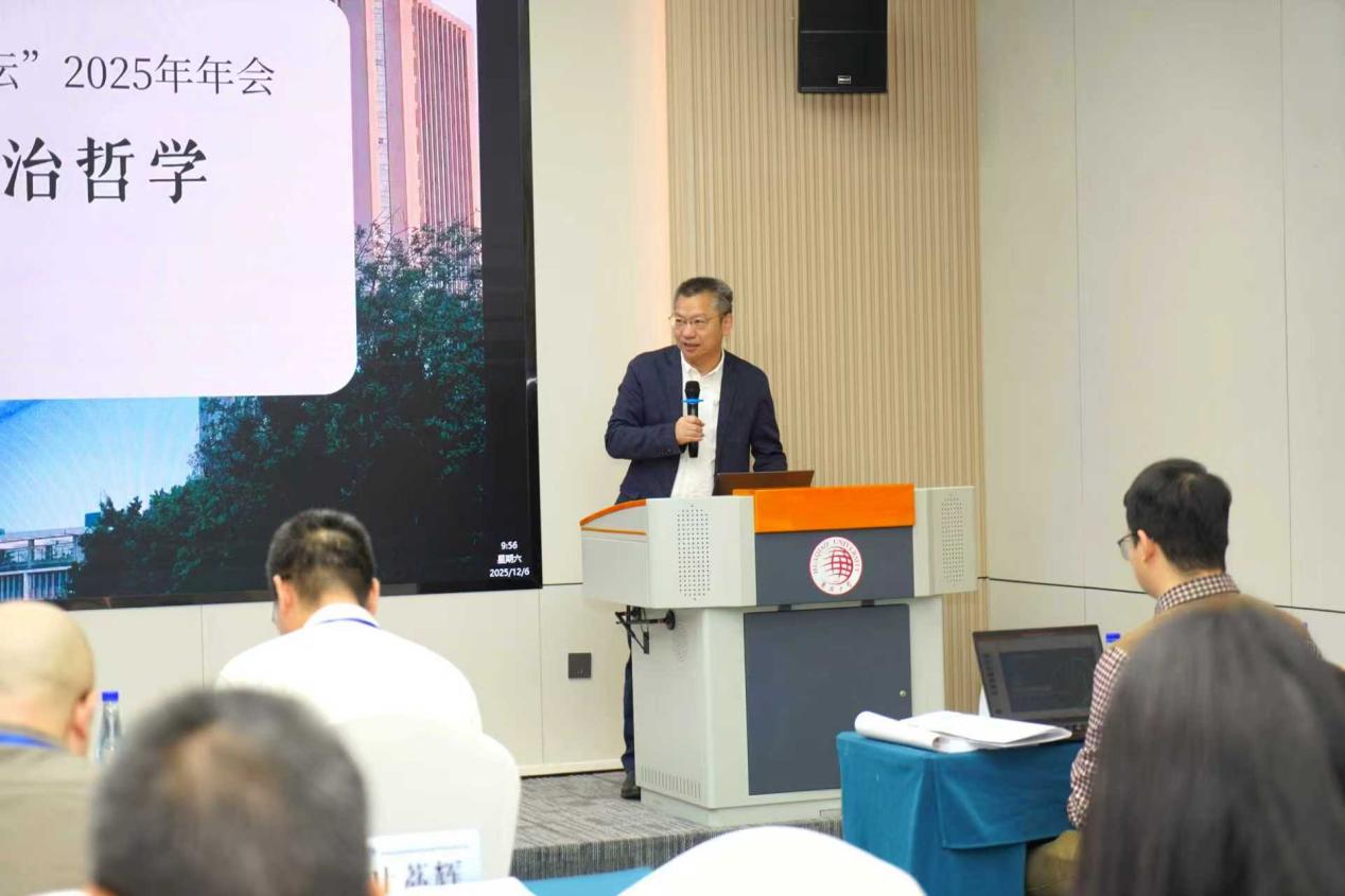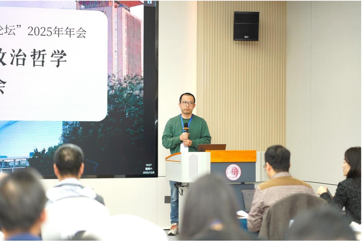 湖南师范大学哲学学院邹啸宇副教授报告的题目是《论湖湘学派政治思想的特质——基于体用观的视角》。他指出,湖湘学派以“体用观”回应理学空谈心性问题,强调“明体”与“用”并行,既注重道德根基,也重视制度构建,体现了儒家政治思想的现实关怀与实践取向。