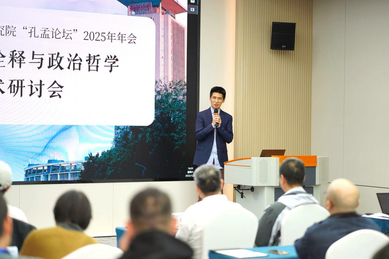 厦门工学院国学院张滇波副教授报告的题目是《分工与正义:重审孟子与许行之争的深层结构与现代性启示》。他从政治哲学与制度伦理视角重新解读孟子与许行之争,不仅分析孟子分工理论的内在张力与历史局限,也指出许行思想对权力异化与交换正义的早期批判,为理解传统思想与现代性议题提供了新视角。