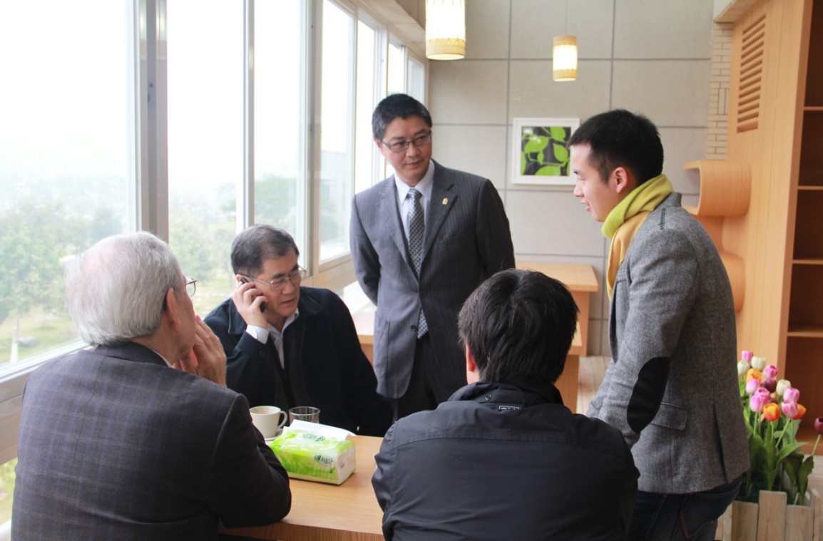 至昨天博雅轩开启以来,这是我们迎来的又一位尊贵的客人。老校长借品咖啡之行,前来送祝福,并将两幅书法作品《醉翁亭记》、《后赤壁赋》作为礼物赠送给学院,对学院的高度赞扬溢于言表。院长杨楹教授、王福民副研究员及德国教授Helle与老校长共品咖啡,忆往昔、展未来。 院长杨楹教授表示非常感谢老校长对学院成长的关心和祝福,王福民副研究员则表示将教Helle教授打太极拳,交流中国传统文化。整个上午的“咖啡时光”在宁静与和谐中流淌。博雅轩在流畅的英语交流和轻松愉悦的氛围的氤氲下俨然已有国际化学院的范式。