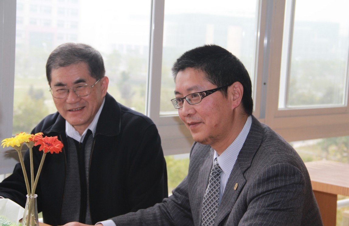 16日上午,博雅轩内济济一堂。几位教授用英语交谈甚欢,传来阵阵爽朗的笑声,让人有置身国外的错觉。近看去,除了学院领导、老师外,还有一位久违了的熟悉的身影:儒雅的举止、谦和的笑容——正是老校长丘进。