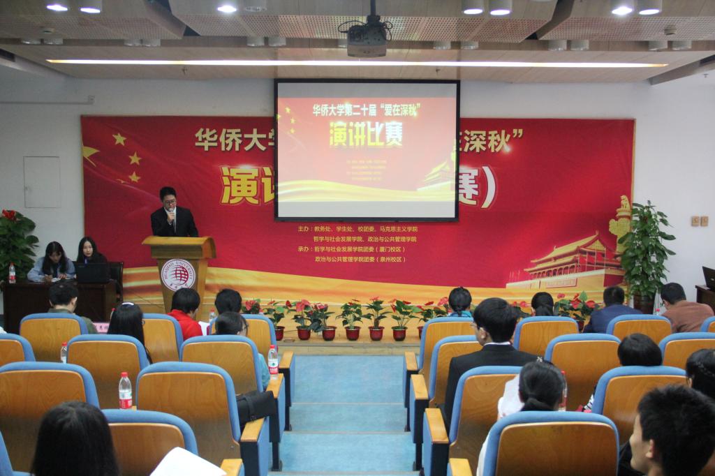 11月26日下午,由永利集团教务处、学生处、校团委、马克思主义学院、政治与公共管理学院、yl9193永利集团主办,yl9193永利集团承办的永利集团第二十届“爱在深秋”爱国主义演讲比赛预赛(厦门校区)在王源兴国际会议中心G103顺利举行,包括境外生在内的共41名同学参加了比赛。