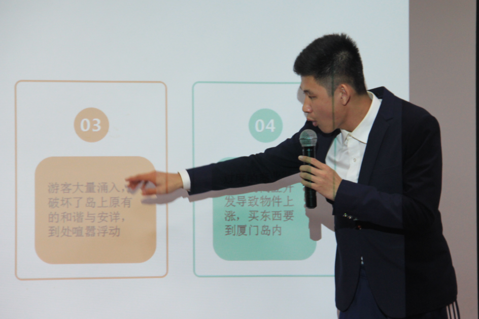本次汇报会,共有10支队伍从预赛、复赛中脱颖而出,展示了他们的调研成果。经过5分钟的PPT内容演示和汇报,“中学生校园欺凌问题调查研究”实践团以精心的准备、饱满的内涵以及丰硕的成果斩获第一名。“厦门老年人再教育现状调查”实践团、“精准扶贫中对精神扶贫需求的探索”实践团分别获得本次比赛的二、三名。