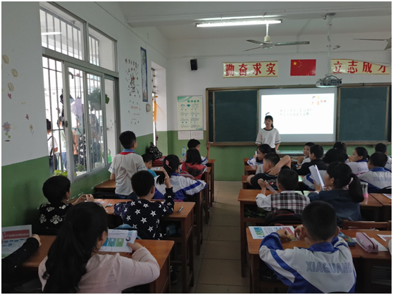 厦门市霞光小学预防校园欺凌宣讲:队员岳晓倩正在与学生互动