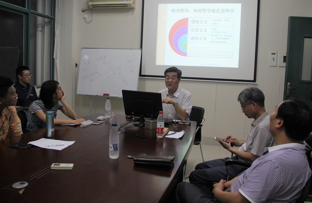 马雷教授就讲座内容做了简要的总结并对科学哲学未来的理论形态问题提出了疑问,刘大椿老师对新形式的理论形态主要持批判解构的态度,他还以当今政治热点话题为例,生动形象地为我们揭示了解构主义作为主流意识的表现。刘荣军教授对领域跨界问题提出自己的看法,认为建构主义使得马克思主义变得活灵活现。王阳教授提出哲学家是否应该关注科学家的问题。刘大椿老师认为哲学对科学的影响主要是批判性的,而不一定对具体研究方向有直接帮助,但却能够引起科学界的注意和重视。