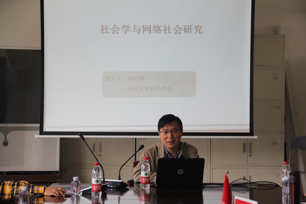 2017年4月23日上午9:30,南开大学社会学系主任赵万里教授应邀在我院F1-401主讲“社会学与网络社会研究”。此次讲座是yl9193永利集团“群学讲坛”讲座系列第七讲,我院教师马雷、郭荣茂、王阳和我院本科生、硕士生聆听了讲座,讲座由王阳老师主持。