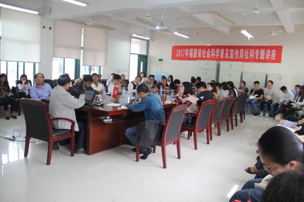 据了解,本次讲座是2017年福建省社会科学普及宣传周社科专题讲座系列之一,也是学院深入贯彻落实党的十九大精神、加强理论学习的重要举措之一。今后,学院将继续组织学习十九大精神,继续推进“两学一做”学习教育深入持续开展,努力发挥学院作为人文社会科学学院的特色和优势,不忘初心、牢记使命,为推进新时代中国特色社会主义不断发展服务。