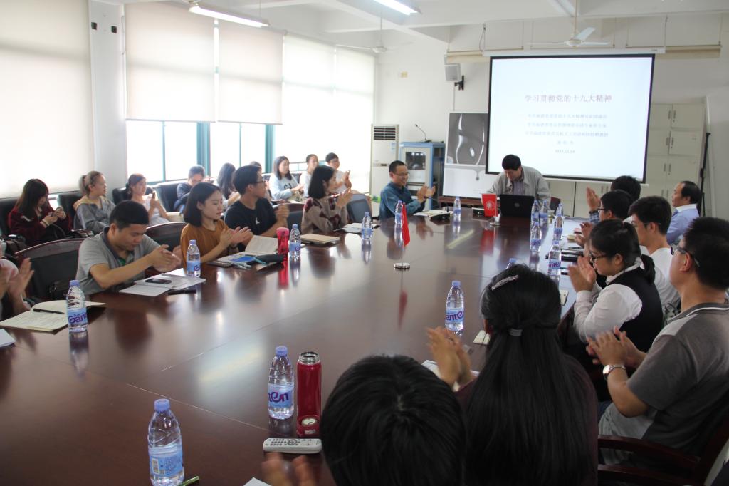 11月14日下午,哲社学院党委组织学院全体师生党员在教学区F1-401参加“两学一做”“专家教授讲党课”系列讲座之学习贯彻党的十九大精神理论学习报告会,报告会邀请中共福建省委党的十九大精神宣讲团成员、中共福建省委宣传部理论宣讲专家库专家、中共福建省委机关工委讲师团特聘专家、福建省百场社科讲座特邀专家、福建师范大学郑传芳教授主讲,学院党委委员、教工党支部书记陈庆超教授主持。