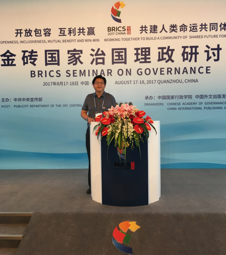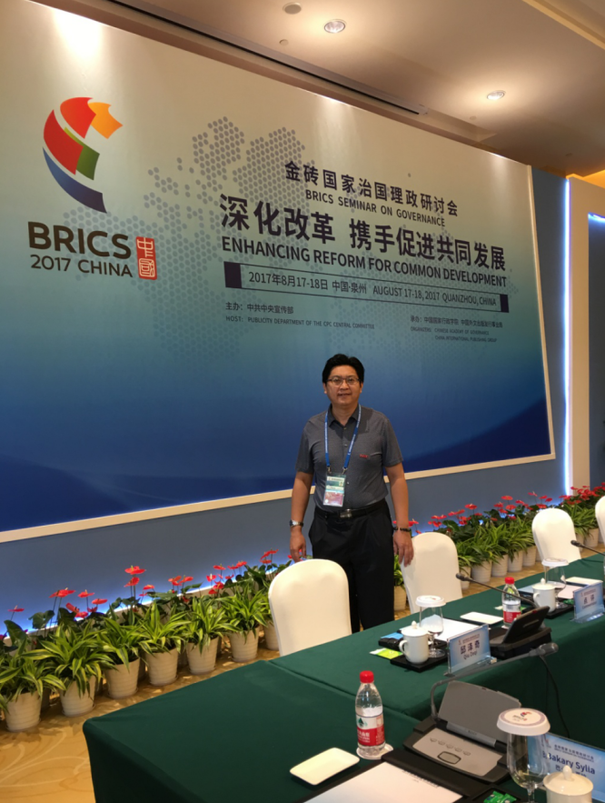 2017年8月17-18日,由中共中央宣传部主办,中国国家行政学院和中国外文出版发行事业局共同承办的“金砖国家治国理政研讨会”在福建泉州举办。会上,国内相关单位负责人、高端智库负责人、知名专家学者和知名企业家与金砖国家相关政要、知名智库负责人、跨国企业高层以及其他新兴市场国家和发达国家代表等,共同围绕“开放包容 互利共赢 共建人类命运共同体”的主题,发表了见解并进行了多向的交流互动,最终形成了“泉州宣言”。我院薛秀军教授受福建省委宣传部邀请,参加了本次研讨会开幕式,并参加了平行会议Ⅰ:“深化改革,携手促进共同发展”,与与会专家学者进行了交流讨论。