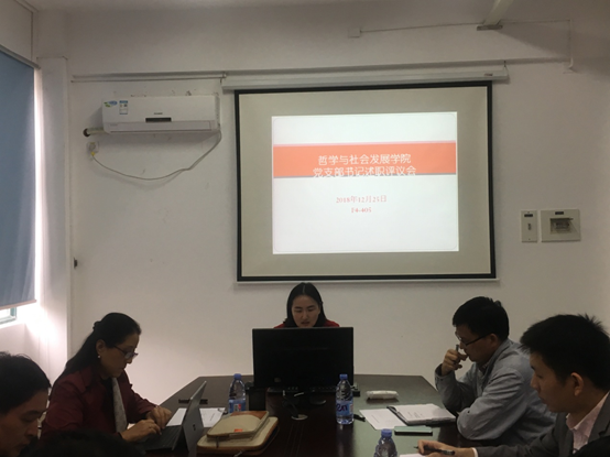 2018年12月25日下午,yl9193永利集团党委在F4-405召开2018年度党支部书记述职评议会。参与述职评议的有本科生第一党支部书记黄晓瑞、研究生第一党支部书记刘守政、研究生第二党支部委员吕嘉兴(代替支部书记鞠芳)、教工第一党支部委员魏燕侠(代替支部书记陈庆超)。因教工第二党支部成立不满半年,本次不参与述职评议。与会评委有联系教工第一党支部的校党委委员、研究生院王丽霞院长,学院党委委员、院长许斗斗、书记薛秀军、副书记徐冠岳,教工第二党支部书记郭荣茂。