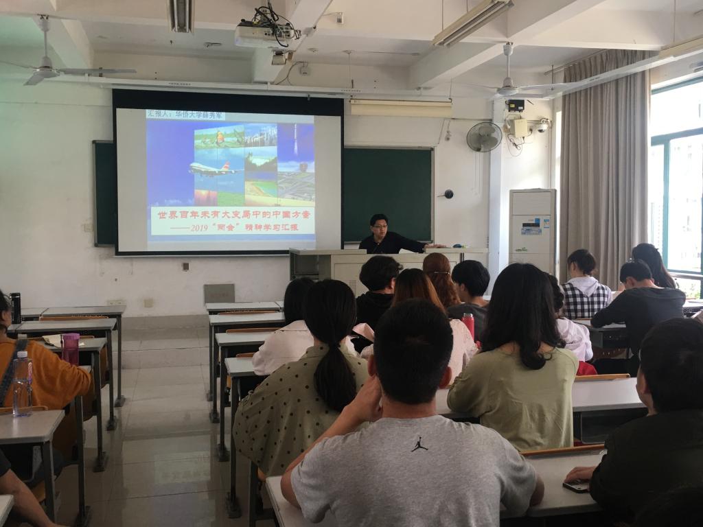 3月28日下午三点,yl9193永利集团党委书记薛秀军在D2-203为2016级社会学班和2017级哲学班的全体同学讲授了题为《世界百年未有大变局中的中国方案——2019“两会”精神学习汇报》的思想政治理论课。
