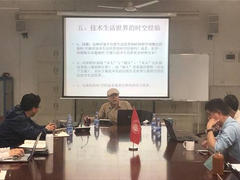 孙周兴讲座的主题为《生活世界经验的重建——尼采与海德格尔的时空经验》。本次讲座的目标有三点:1.提出技术生活世界的时空经验重建问题;2.从尼采哲学中引发出“圆性时间”概念,从海德格尔哲学中引发出新的“时-空”观;3.争论新的时空理解与当代艺术和生活的关系。随后孙教授分六个部分展开了此次讲座:“自然生活世界与技术生活世界”、“现代哲学批判起步于时空问题的重解”、“线性时间与圆性时间”、“新时-空观”、“技术生活世界的时空经验”、“新时-空观与当代艺术”。