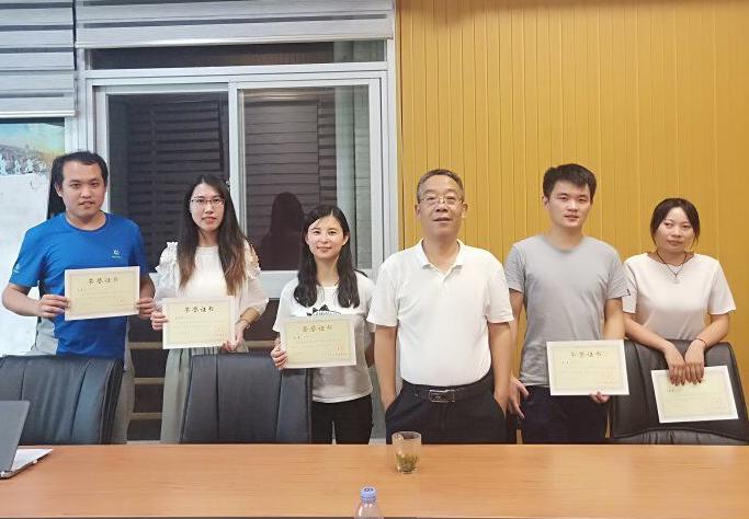 最终,由周世兴为获奖同学颁发证书并合影留。此次的苹果讲荟既有每个同学精彩的展示,又有老师细致入微的点评,活动十分成功。据悉,“苹果讲荟”是为提高研究生论文写作与演讲水平而举办的论文讲评活动,现已举办和开展多年,有一定影响力,并得到同学们的广泛参与。