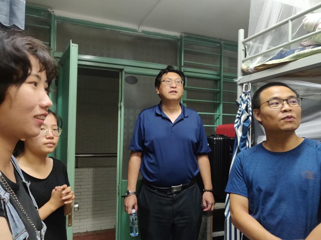 2019年8月31日晚,我院院长许斗斗、党委书记薛秀军、党委副书记徐冠岳、副院长李忠伟、系主任、班主任及主要学生干部到宿舍走访研究生和本科生。