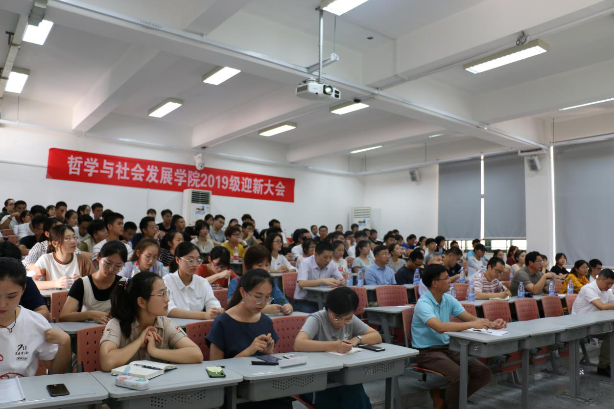 9月1日上午十点四十五分哲社学院2019级迎新大会于F4-202顺利召开。哲社学院院长许斗斗、党委书记薛秀军、党委副书记徐冠岳、副院长李忠伟、哲学系系主任常旭旻、社会学系系主任王嘉顺、副主任郭荣茂、院团委书记兼辅导员鞠芳、哲学系马雷教授、2019级研究生班主任陈庆超、2019级哲学班主任张云江、2019级社会学代理班主任王嘉顺及哲社学院全体本硕博新生出席本次大会。院党委副书记徐冠岳主持大会。