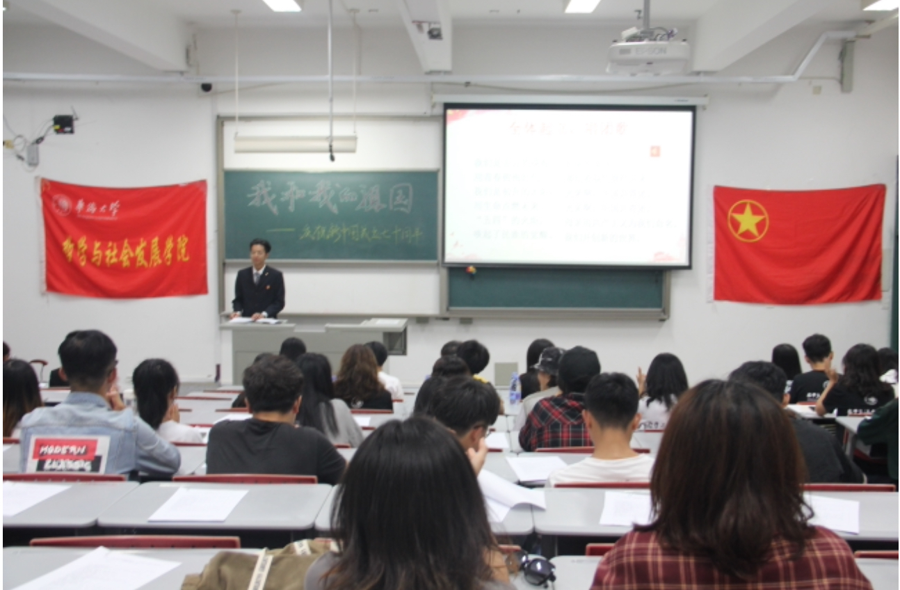 10月25日晚,哲社学院“我和我的祖国——庆祝新中国成立七十周年”主题演讲比赛在F4–202顺利举办。团委鞠芳老师,2019级硕士王瑞晨,哲社学院主要学生干部白宇哲、石梓玉、王雨琪、张紫彤、夏诗玮等与会并担任评委。
