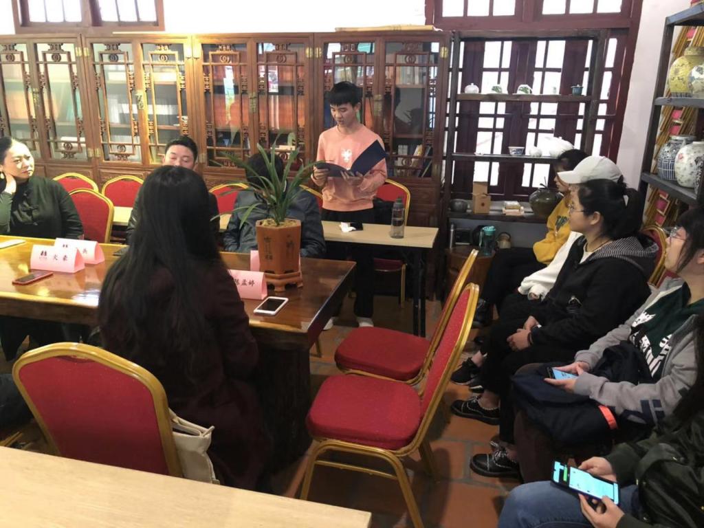 再次,孟小红向同学们讲述了孟子书院在国内外普及、传播儒家文化的历程和业绩。冯兵老师也表达了他对儒学传播和当前国学热现象的一些看法和期望。孟子书院陈孟婷老师也表达了她作为一名年轻的儒学传播者对于儒学传播与年轻人学习儒学和中国传统文化的看法。应邀出席活动的阿里巴巴钉钉负责人火豪也表达了他作为一名网络从业者对儒学传播的喜爱与看法,认为传统文化也可以更好地利用网络手段传播。17级哲学班学生代表王伟民同学发言,表达了对于儒学的兴趣与关注点,以及对本次专业实习活动的感想。