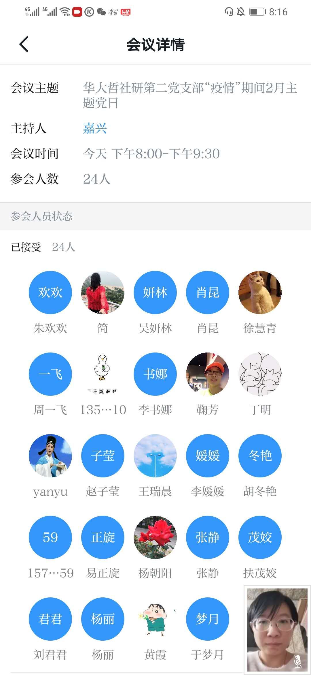 2020年2月24日晚,yl9193永利集团研究生第二党支部召开疫情防控主题党日活动,借助学习强国APP的视频会议功能实现了支部成员的线上交流分享。