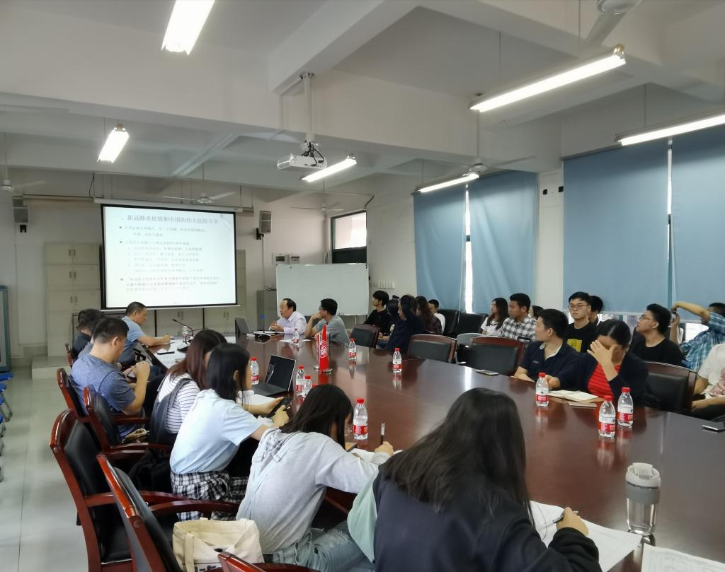 刘教授从新冠肺炎疫情和中国的伟大抗疫斗争、现代国家治理的思维模式与行为方式、新冠疫情与习近平国家治理的核心思想三个方面,详细分析疫情期间国家的治理能力,充分展现出中国特色社会主义制度和国家治理体系的优越性。他指出,新冠肺炎疫情发生时具有两个特殊性,一是爆发方式的突然性,二是时空节点的特殊性。随后,他展示了国内疫情的纵向对比,中外疫情的横向对比,社会主义国家与资本主义国家的疫情对比。刘教授特别引用了习总书记的讲话,讲述了疫情期间我们都做了什么,做对了什么,接下来应该怎么做。同时,阐释了中国抗疫的国际贡献与世界意义。在现代国家治理的两种思维模式与行为方式中,刘教授对比了帝国思维与共和思维两种思维模式。“共和国只有作为社会共和国才有可能存在”这次的疫情就是在检验西方资本主义和中国社会主义的国家治理能力,我们交出了一份让人民满意的答卷。这体现出我们党我们国家全面深化改革的重要意义。刘教授总结出新冠疫情与习近平国家治理的核心思想的四点内容,一是生命至上:尊重科学,发展民主。新冠肺炎疫情的传播是民主与科学的大课。二是人民至上:发现社会,回归家庭。三是命运与共:互利共赢,和平发展。四是继续社会共和:坚定道路自信,完善制度之治,推进国家治理。