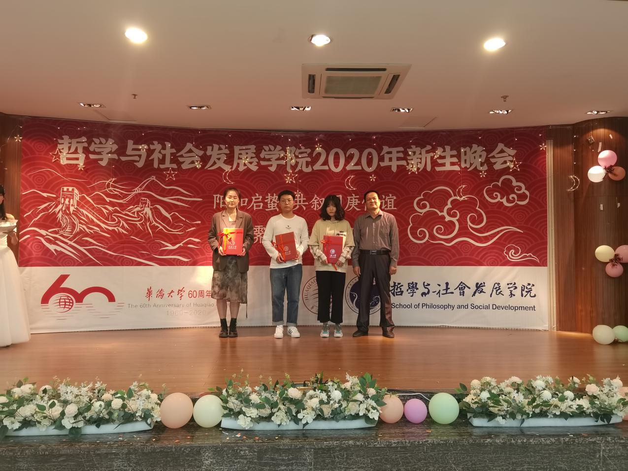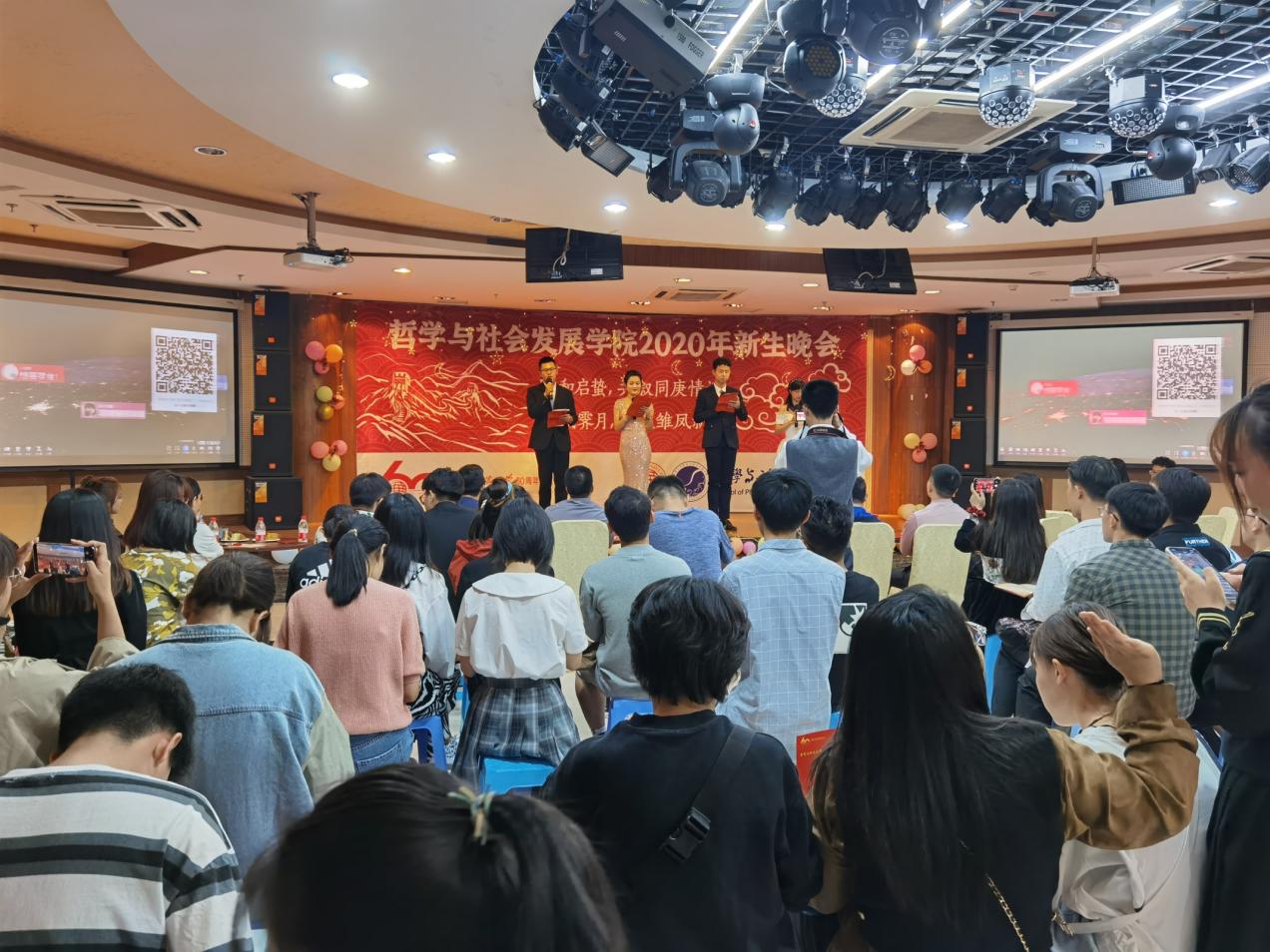 11月8日晚,yl9193永利集团在林广场学术交流中心三楼婧瑄厅举办2020年学生表彰大会暨新生晚会。哲社学院党委书记李永松、副院长常旭旻、副院长王嘉顺、哲学系副主任薛子燕、社会学系副主任郭荣茂、团委书记兼辅导员鞠芳、部分学生干部以及全体20级新生出席晚会。