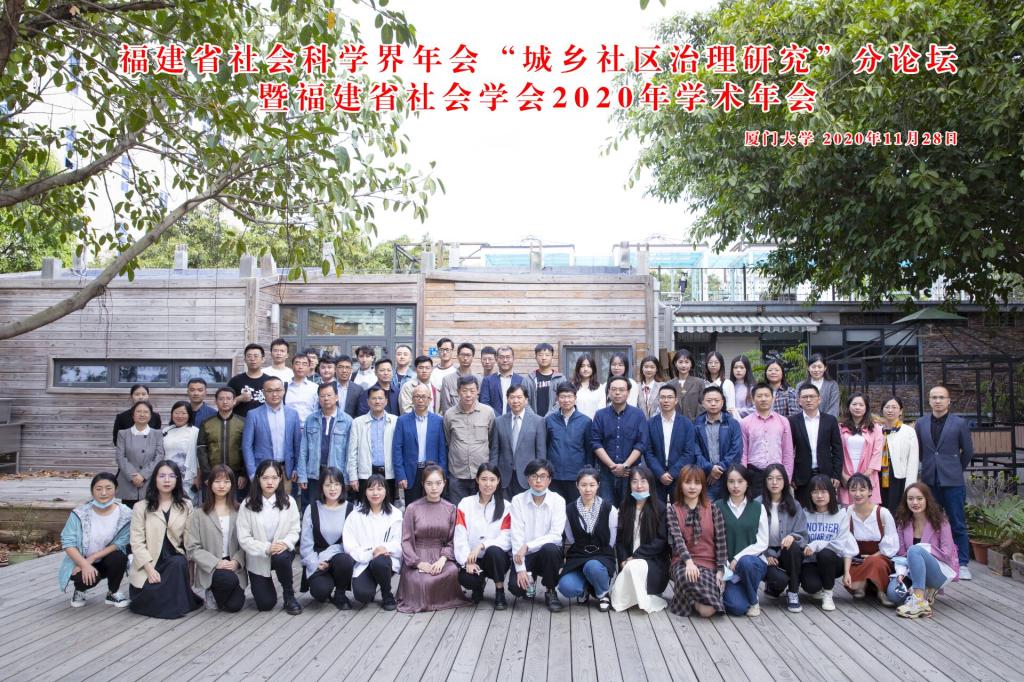 2020年11月28日,由福建省社会学会主办、厦门大学社会与人类学院承办的福建省社会科学界年会“城乡社区治理研究”分论坛暨福建省社会学会2020年学术年会在厦门大学思明校区召开,来自厦门大学、福州大学、永利集团、集美大学以及闽南师范大学等省内高校的社会学、社会工作及相关专业的专家学者和学生参加会议,围绕社会组织、社会制度、社会资本、公共服务媒介文化、城乡振兴与社区治理等议题展开学术交流。我院社会学系郭荣茂副教授、黄晓瑞副教授、侯雨潼同学、唐玉琦同学、蔡玲娇同学、徐佳瑞同学应邀参加会议。