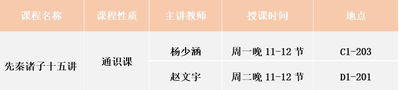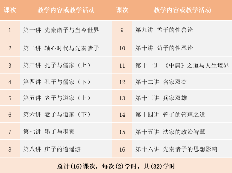先秦诸子是中国文化的思想源泉。本课程主要就是介绍中国先秦主要的思想流派及其代表人物和经典著述的一门通识课程。本课程的主要内容,从思想流派来说,主要包括儒家、道家、墨家、名家、法家、兵家等;从代表人物来说,主要包括孔子、孟子、荀子、老子、庄子、墨子、惠施与公孙龙子、管子、商鞅与韩非子、孙子与孙膑等;从经典著述来说,主要包括《论语》《孟子》《荀子》《墨子》《公孙龙子》《商君书》《韩非子》《孙子兵法》等。通过学习本课程,学生们可以全面了解先秦诸子关于宇宙、自然、社会与人生的智慧,进而反思当今世界的社会意义与人生价值,提供一种积极向上的取向与态度。