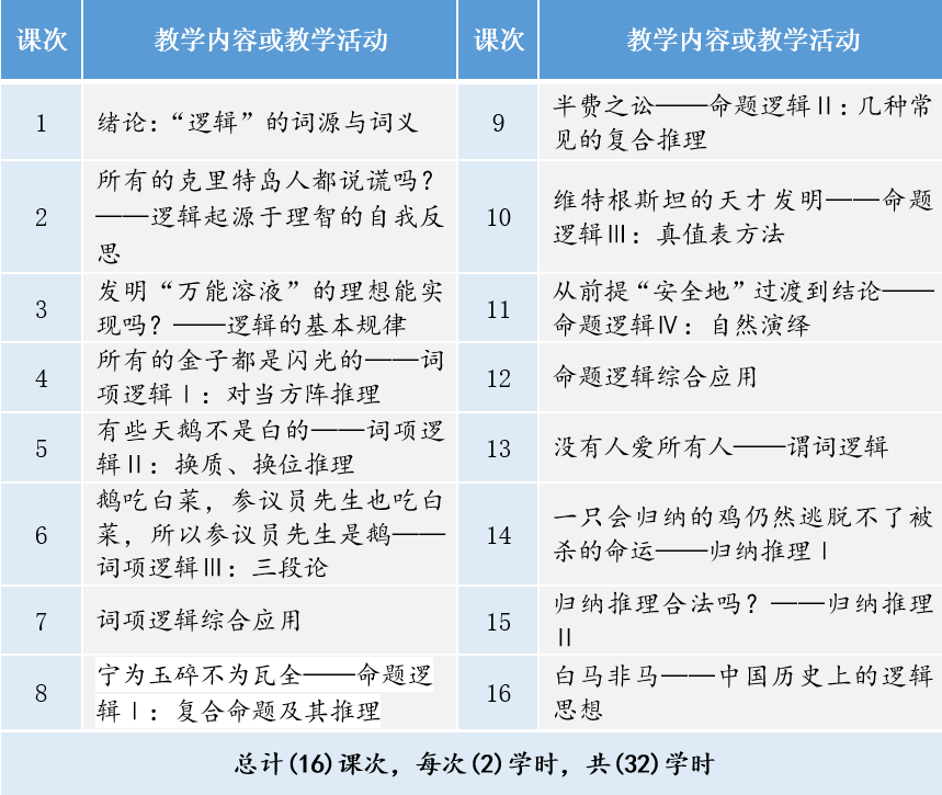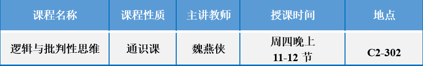 本课程致力于系统讲授逻辑学的基本概念、原理和方法,提高学生的逻辑思维能力和逻辑应用方面的综合素质,为培养具有批判性思维和知识结构健全的通才打下良好的基础。