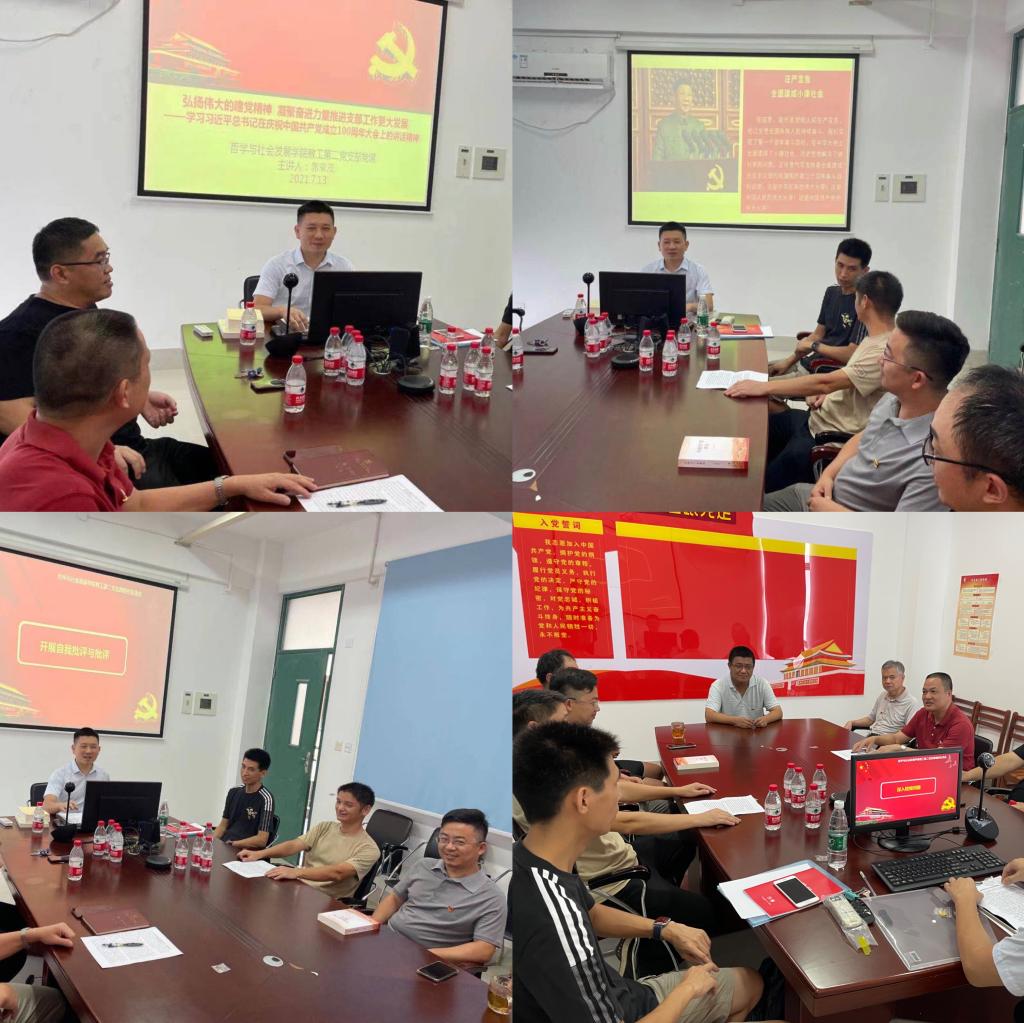 会上,支部书记郭荣茂同志为全体党员作了《弘扬伟大的建党精神 凝聚奋进力量推进支部工作更大发展——学习习近平总书记在庆祝中国共产党成立100周年大会上的重要讲话精神》的党课,进一步向支部党员讲述了中国共产党的初心使命和伟大建党精神,展示了中国共产党为什么“能”、马克思主义为什么“行”、中国特色社会主义为什么“好”,提出了今后支部的工作开展要弘扬伟大的建党精神,增进团结,把各项工作落到实处。